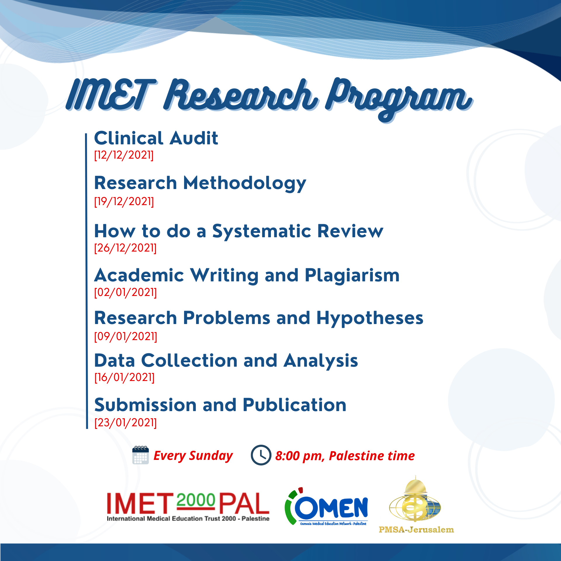 One of the important topics that we cover in IMET 2000 Pal are Clinical Audits and Research, because of its importance in promoting medical services and increasing the scientific production.