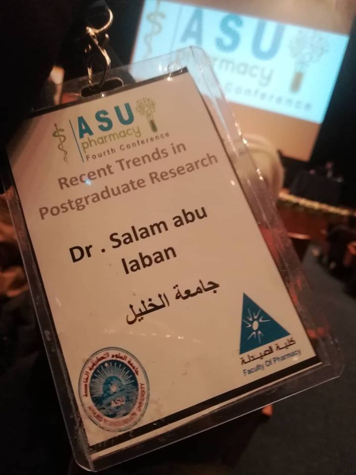 IMET2000-Pal Travel Bursary Award for Pharmacists, ASU Pharmacy 4th International Conference about Recent Trends in Postgraduate Research, Amman, Jordan (January 5th – 6th, 2019) Miss. Salam Abu laban