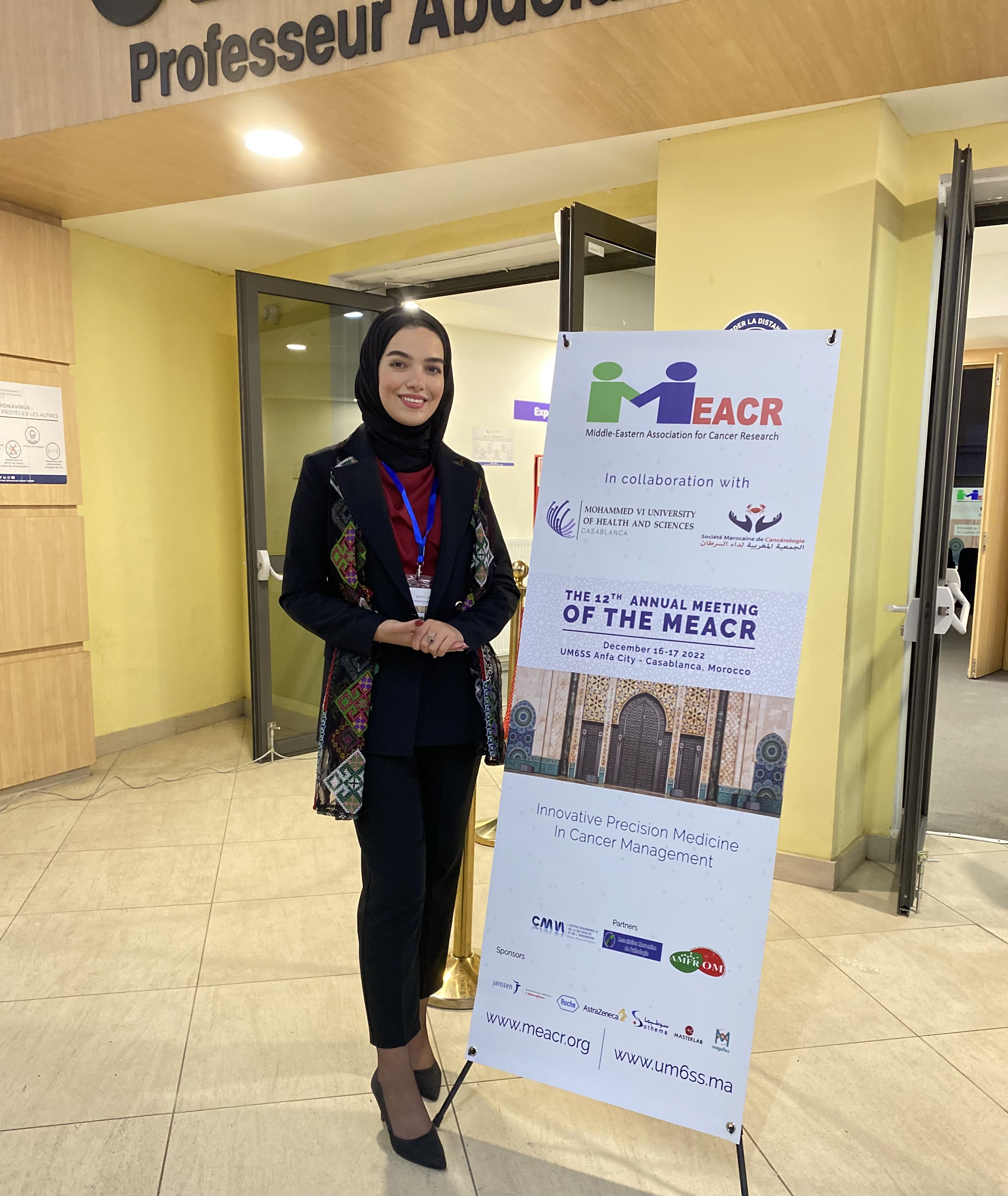 I am pleased to write this letter to say thank you for the financial support that you extended to me to attend the 12th annual meeting of the Middle-Eastern Association for Cancer Research (MEACR) in Qatar, in collaboration with the Société Marocaine de Cancérologie (SMCC) in Morocco.I would like to report my participation. The MEACR, which was established as a nonprofit organization in 2009, aims to enhance the exchange between clinicians, cancer scientists, graduate students, and other health workers who deal with cancer patients in the larger Middle East (ME), including North Africa. Thus, in order to achieve this mission, the MEACR holds an annual meeting in a different ME country each year to provide equal opportunity for all cancer researchers across the region and help them build a collaborative base with various educational and research institutions. As a Palestinian Medical Doctor and Researcher, I was grateful to attend the conference and to be one of the speakers, where I presented an oral presentation entitled, "Awareness of Palestinians about Lung Cancer Symptoms: Current Situation and Future Directions." In discussion with a large group of researchers and scientists from all over the world Finally, I would like to thank you again for your funding, which helped me to participate in this conference. |