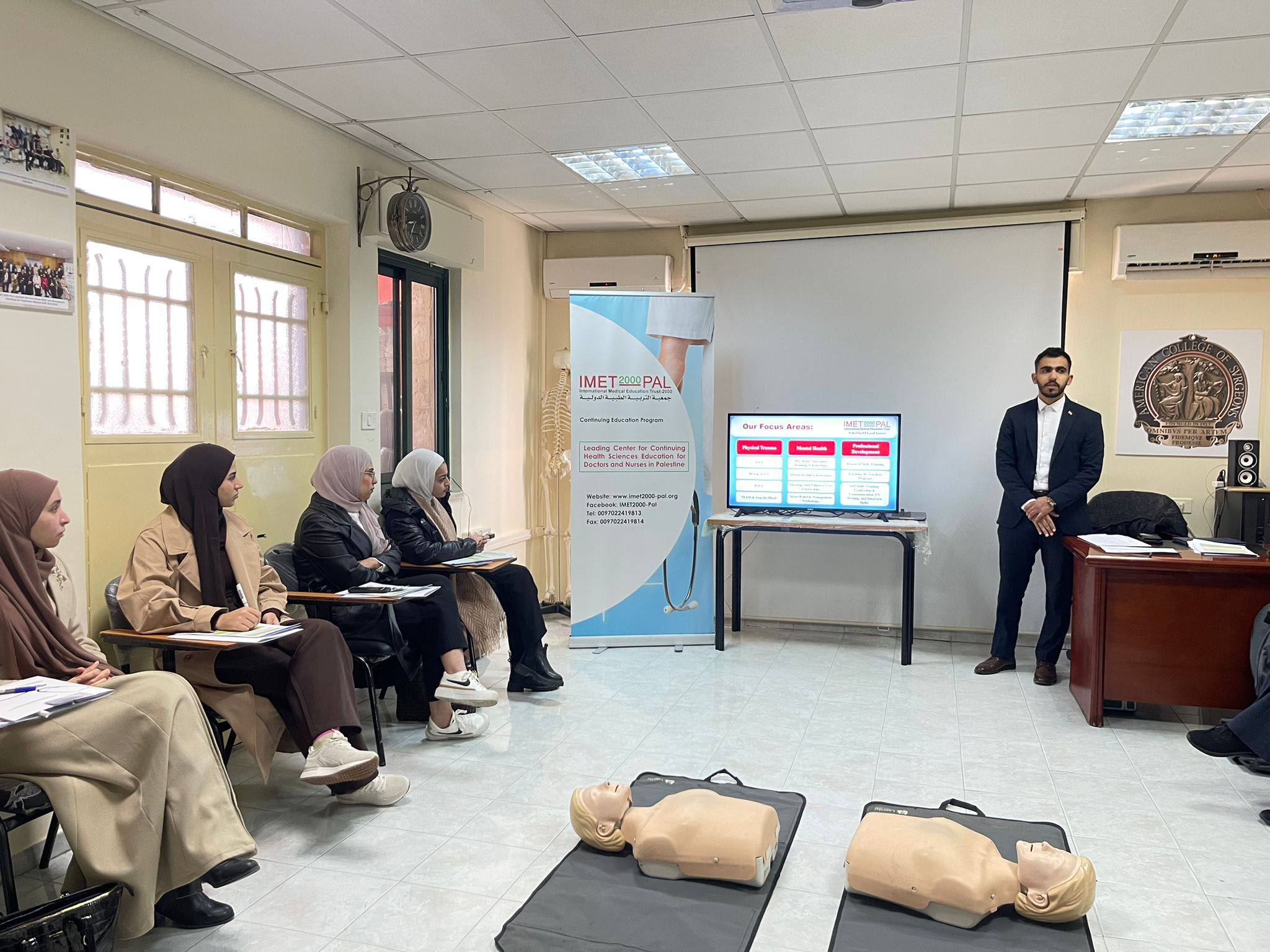 ضمن استراتيجيتها الهادفة إلى بناء قدرات الكوادر الطبية الفلسطينية ورفع مستوى الجاهزية في التعامل مع الحالات الطارئة، نفّذت جمعية التربية الطبية الدولية IMET2000، اليوم الاثنين الموافق 5 يناير 2026، تدريبًا متخصصًا في إنعاش القلب الأساسي (Basic Life Support – BLS)، استهدف الأطباء والممرضين، وذلك في مقر الجمعية بمدينة رام الله.