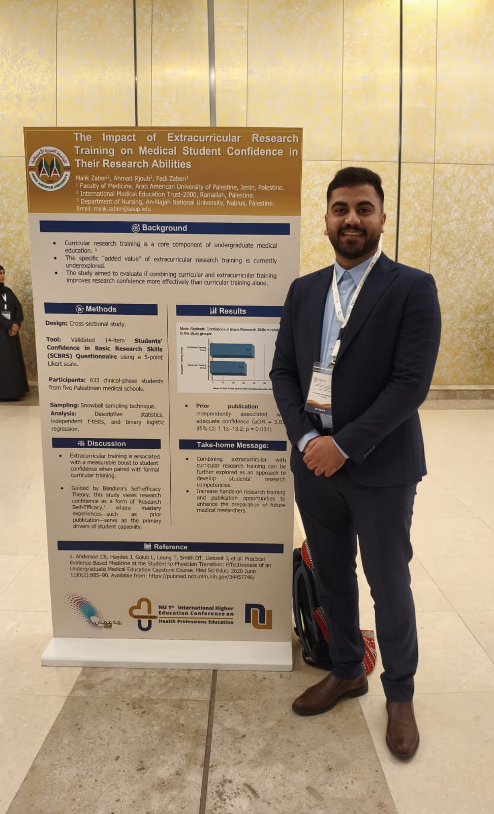 استعرضت الدراسة نتائج بحث مسحي تناول واقع تعليم البحث العلمي في برامج الطب البشري في الجامعات الفلسطينية، ودور التدريبات اللامنهجية في البحث العلمي في تعزيز ثقة طلبة الطب بمهاراتهم البحثية. وقد أظهرت النتائج أن التكامل بين التدريب المنهجي على البحث العلمي والتدريبات اللامنهجية يسهم في رفع مستوى الثقة لدى طلبة الطب في مهاراتهم البحثية، لاسيما عند اتاحة قرص تطبيقية عملية في المجال البحثي.