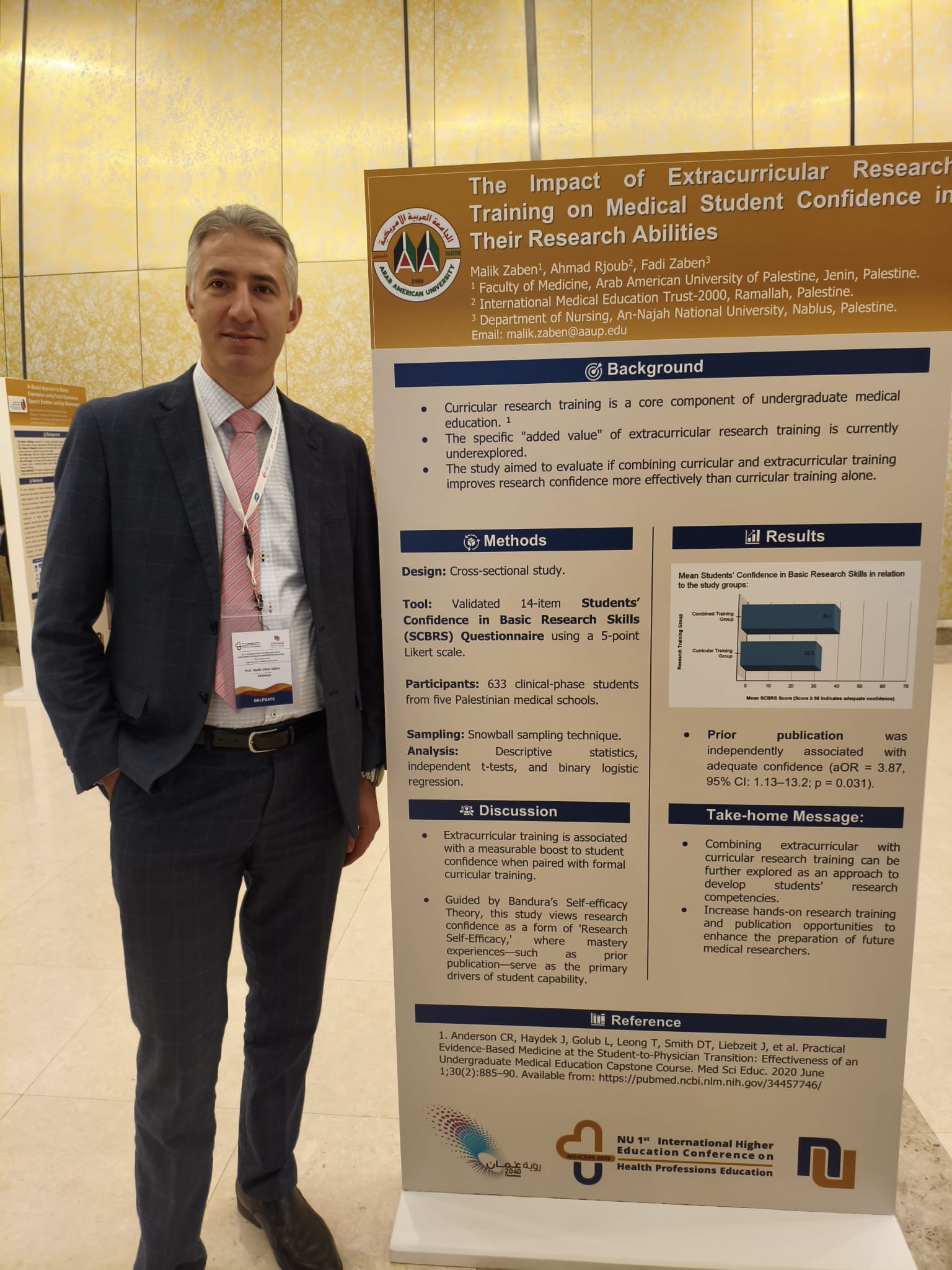 هذا وقد جاءت المشاركة بحضور كل من أ.د. مالك زبن، المدير التنفيذي للجمعية وعميد كلية الطب في الجامعة العربية الأمريكية فلسطين، و د. احمد رجوب، مسؤول التعليم الطبي في الجمعية. وكانت مشاركة الجمعية فعّالة، حيث تم عرض نتائج دراستين بحثيتين تعكسان جهود الجمعية المستمرة في تطوير تعليم المهن الصحية في فلسطين.