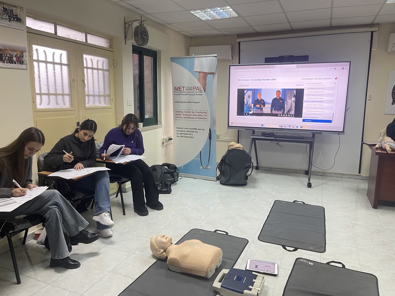 في إطار جهودها المستمرة لتطوير الكفاءات الطبية ورفع مستوى الجاهزية في التعامل مع الحالات الطارئة، نفّذت جمعية التربية الطبية الدولية IMET2000، اليوم االاربعاء الموافق 11 فبراير 2026، تدريبًا متخصصًا في إنعاش القلب الأساسي (Basic Life Support – BLS)، وذلك في مقرها بمدينة رام الله، بمشاركة نخبة من الأطباء والممرضين من مختلف المؤسسات الصحية.