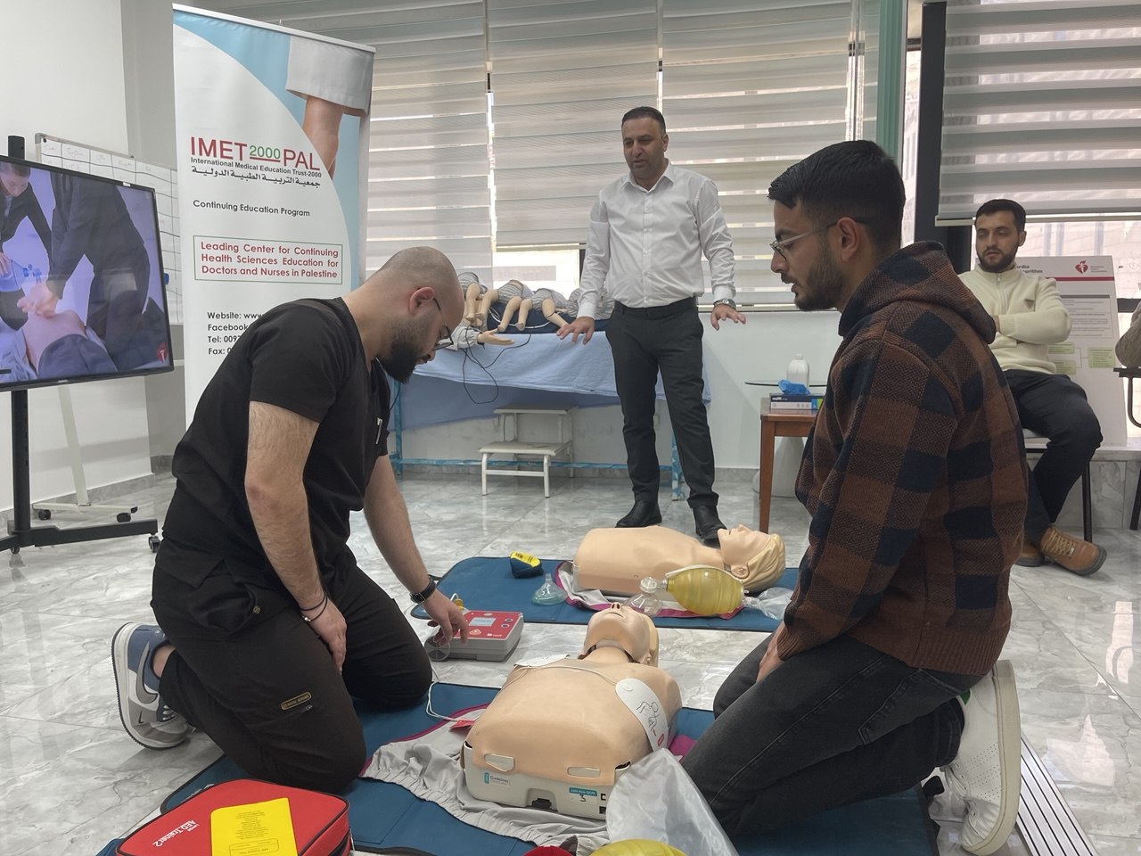 وقد عُقد التدريب في مركز فريندز ميديكال للإبداع الصحي بمدينة نابلس، يوم الأربعاء الموافق 22-4-2026، بمشاركة تسعة من الأطباء العاملين في المستشفيات الفلسطينية، وذلك بهدف تعزيز مهاراتهم العملية في التعامل مع حالات توقف القلب والتنفس والاستجابة الفعّالة للحالات الطارئة.