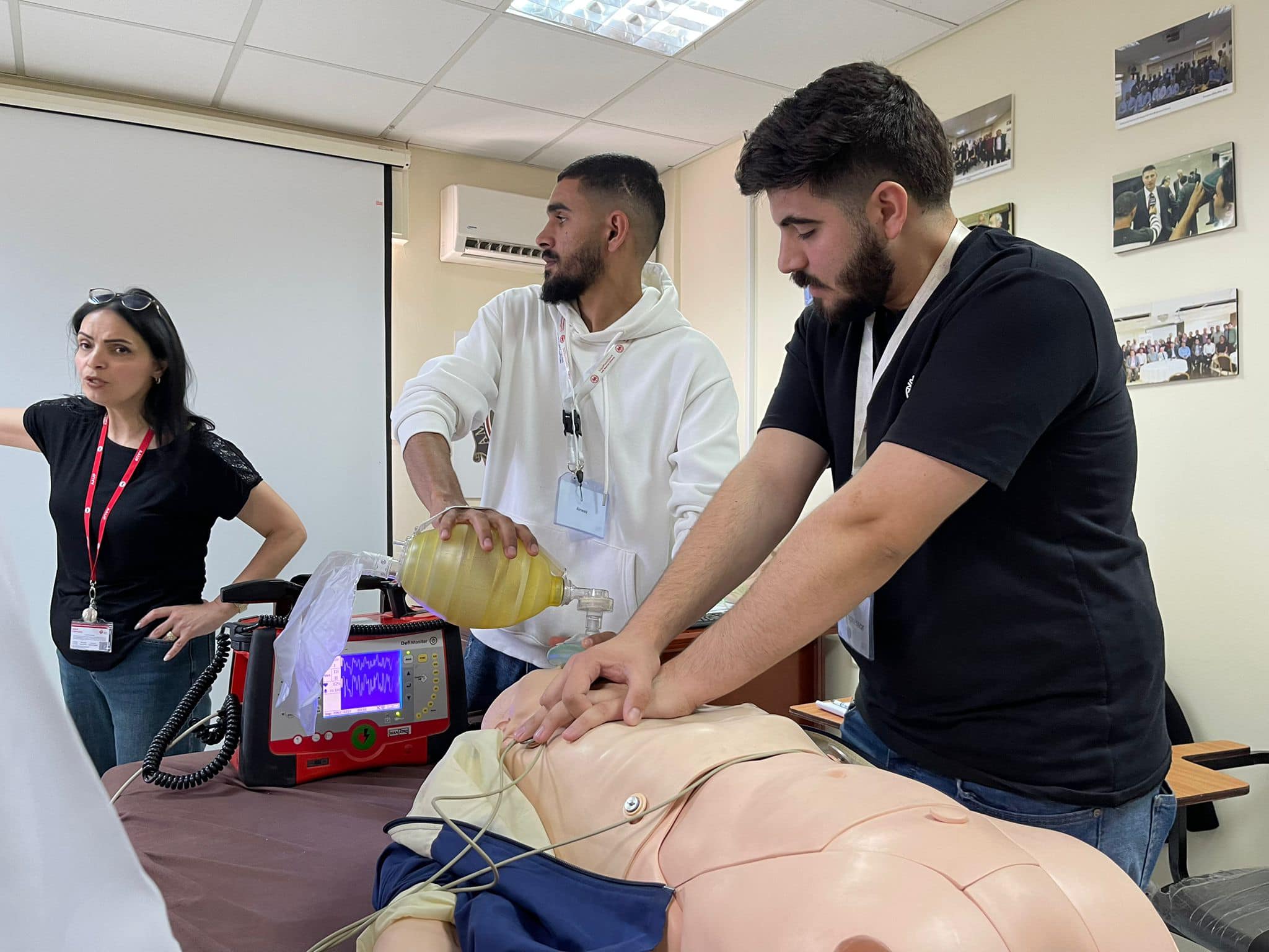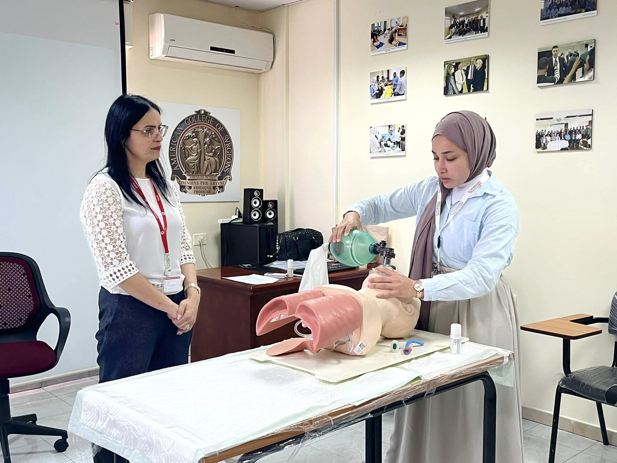 أدارت التدريب الدكتورة ميساء كسبري / مدربة معتمدة في مركز القلب والرئتين الأمريكي التابع للجامعة العربية الأمريكية حيث بدأت الدورة التدريبية بشرح شامل للمعلومات النظرية المتعلقة بإنعاش القلب والرئتين للبالغين ولحديثي الولادة والأطفال حسب توصيات الجمعية القلب الأمريكية لعام 2020. وتهدف هذه الورشة إلى تعزيز قدرات الطواقم الطبية في التعامل السريع والفعّال مع الحالات الحرجة لأمراض القلب والرئتين، التي قد تشكل خطراً على حياة المرضى في حال عدم التدخل بالشكل المناسب. اعتمد التدريب على أمثلة واقعية واستخدام دمى محاكاة متخصصة، بالإضافة إلى أجهزة قراءة تخطيط القلب وأجهزة الصدمات الكهربائية.