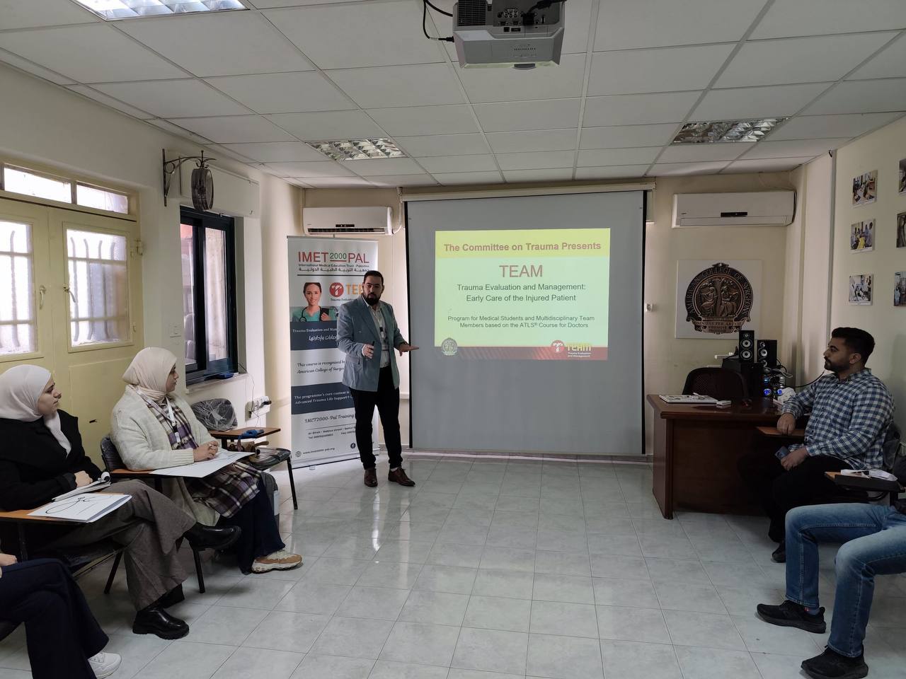 نظّمت جمعية التربية الطبية الدولية IMET2000 دورة تقييم وعلاج الإصابات (Trauma Evaluation and Management - TEAM™) المعتمدة من الكلية الأمريكية للجراحين، بهدف تعزيز جاهزية الكوادر الطبية الفلسطينية في التعامل مع الإصابات والحالات الحرجة، ولا سيما في ظل التحديات الاستثنائية التي يشهدها القطاع الصحي الفلسطيني.