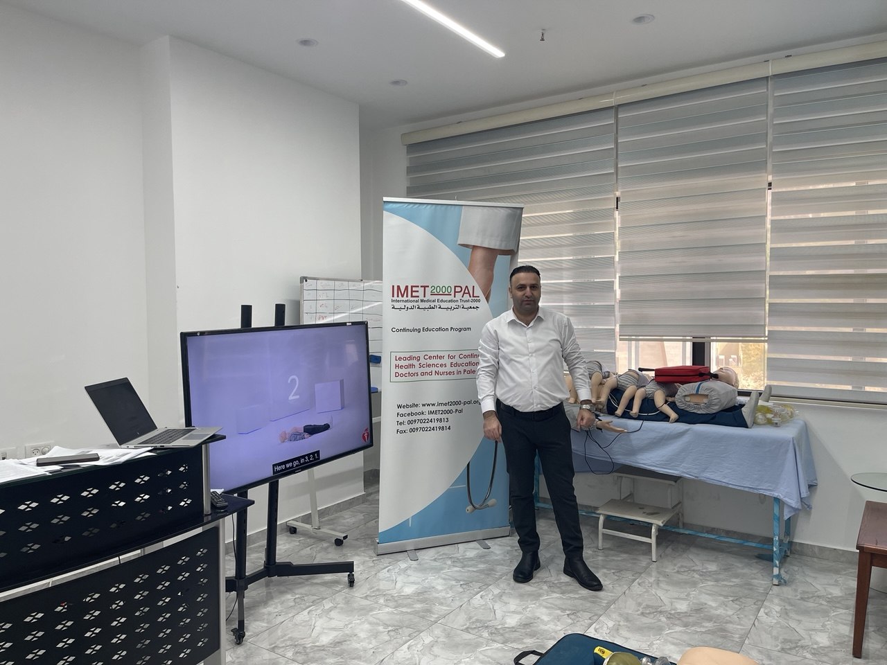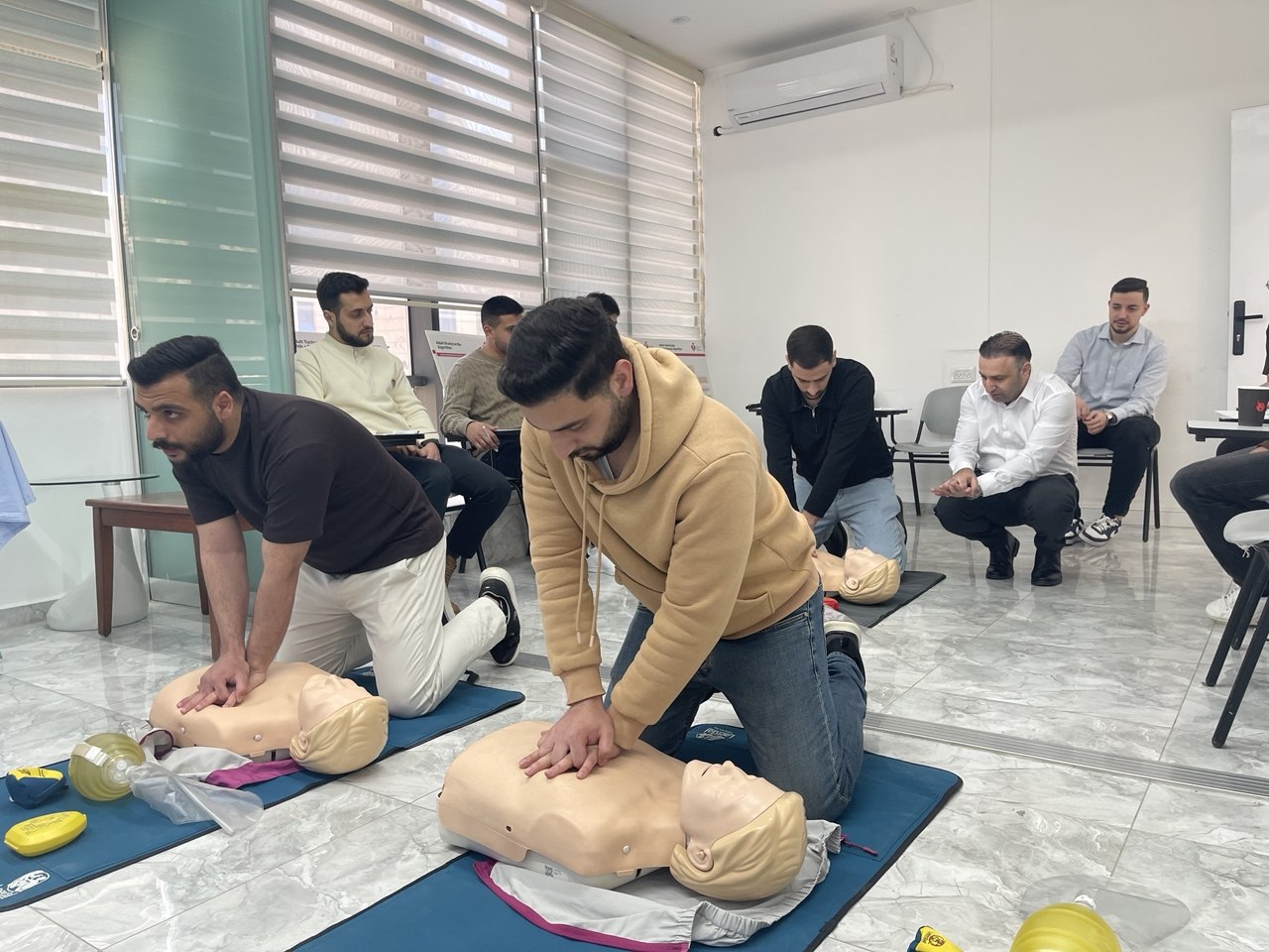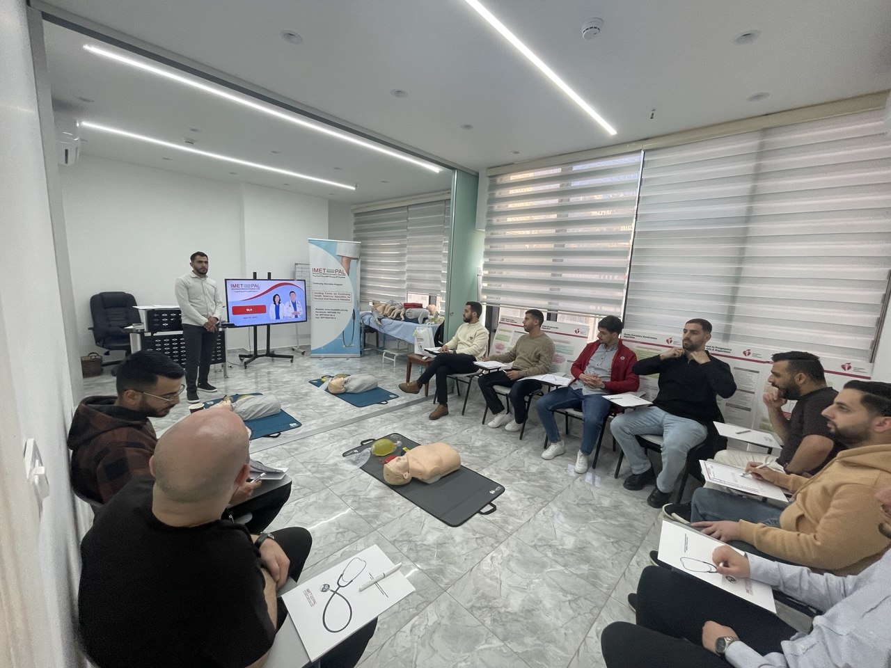 وقد عُقد التدريب في مركز فريندز ميديكال للإبداع الصحي بمدينة نابلس، يوم الأربعاء الموافق 22-4-2026، بمشاركة تسعة من الأطباء العاملين في المستشفيات الفلسطينية، وذلك بهدف تعزيز مهاراتهم العملية في التعامل مع حالات توقف القلب والتنفس والاستجابة الفعّالة للحالات الطارئة.