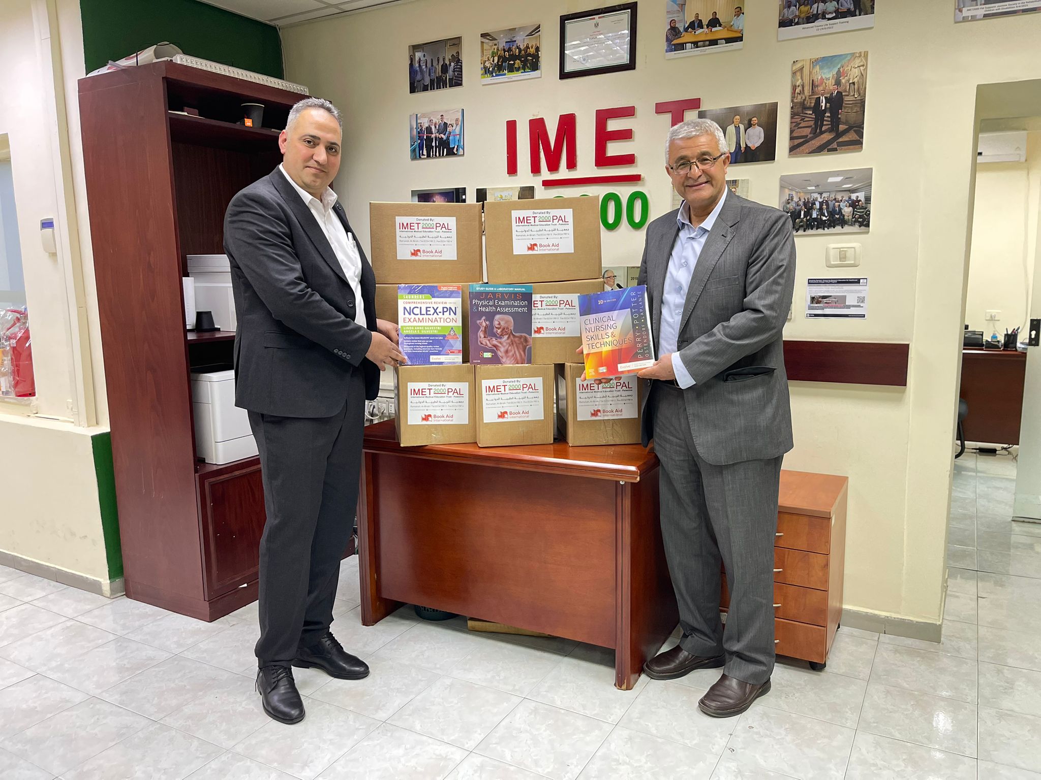 قدّمت جمعية التربية الطبية الدولية (IMET2000)، بالشراكة مع مؤسسةBook Aid Internatioal ، مجموعة من الكتب العلمية المتخصصة عدد (113) كتابًا في مجال المهن الصحية، لصالح جامعة نابلس للتعليم المهني والتقني، وذلك تتويجًا لاتفاقية التعاون الموقّعة بين الطرفين، والتي تهدف إلى دعم وتطوير التعليم المهني الصحي في فلسطين.