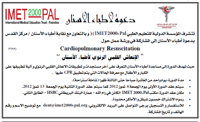 دعوة لأطباء الأسنان لحضور ورشة عمل حول الإنعاش القلبي الرئوي لأطباء الأسنان